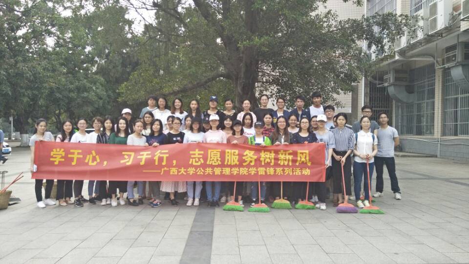 为发扬学习雷锋,助人为乐的精神,塑造一个良好的环境,4月3日下午,公共事业管理2015级的同学组成志愿服务小分队,在成人直播