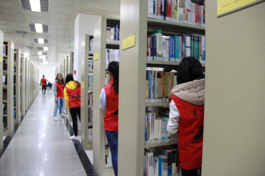 在图书馆老师的安排下,公管学院同学分成了2个小组,对图书馆4楼的两个区域的图书进行了书架整理、图书上架。同学们积极配合图书馆管理人员及各小组长的安排,并认真仔细地工作。