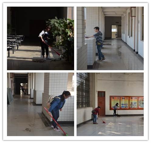 (图为学生党员们负责清扫学院各楼的公共区域)