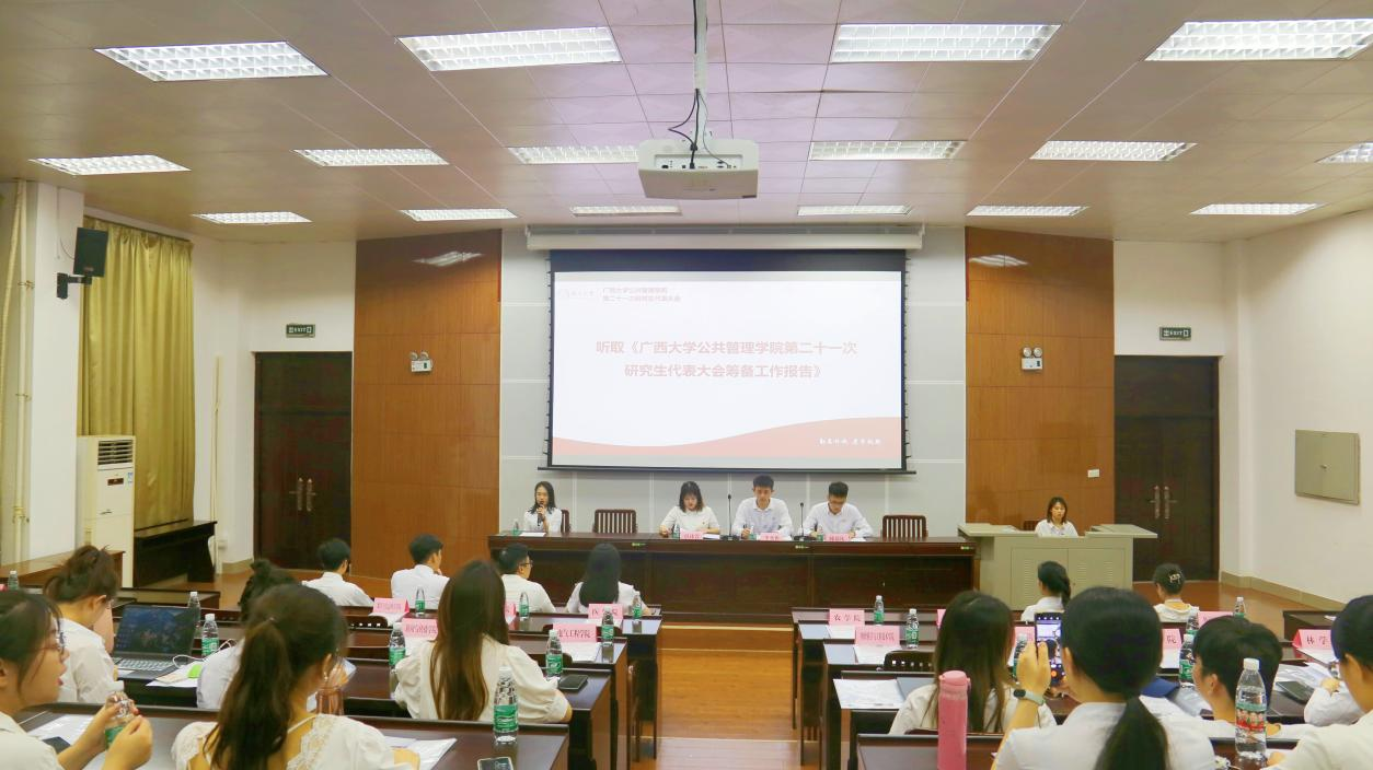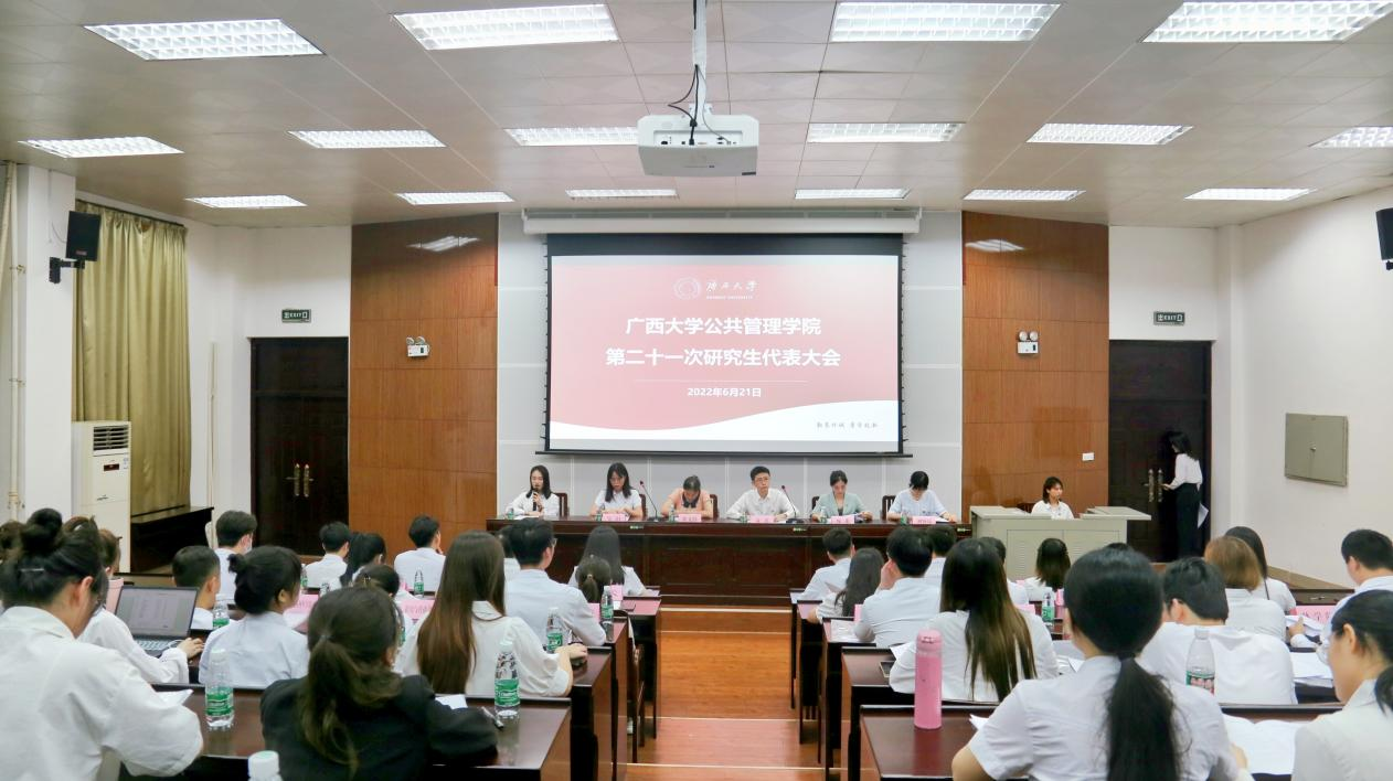 在隆重庆祝中国共产主义青年团成立100周年、喜迎党的二十大胜利召开的热烈氛围中,6月21日,成人直播 第二十一次研究生代表大会在学院106教室顺利召开。成人直播 党委书记聂鑫老师,党委副书记庞惠老师,团委书记黄文静老师,团委副书记刘佩瑶老师,校研究生会主席团代表邹阳同学,兄弟学院研究生会主席团代表,成人直播 第二十届研究生会主席团以及学院各研究生班级学生代表出席本次会议。