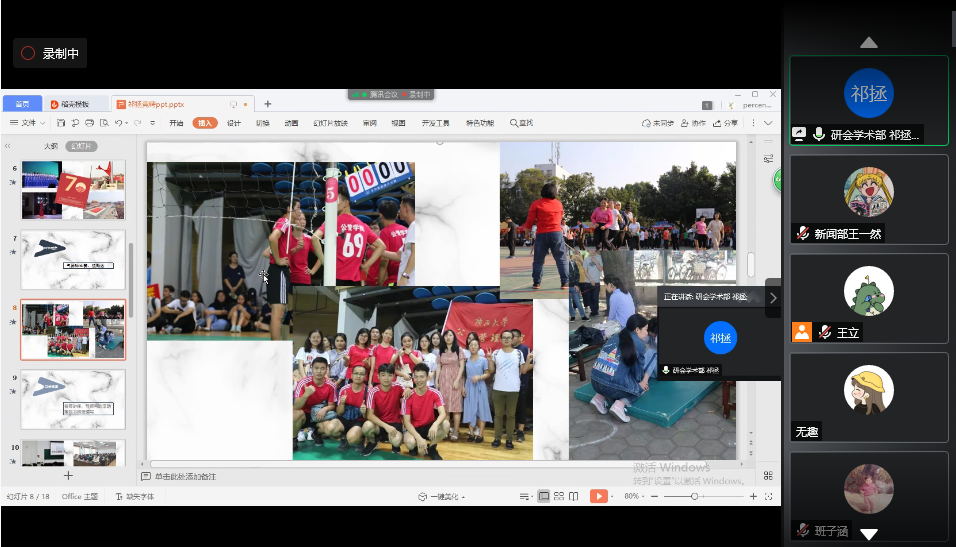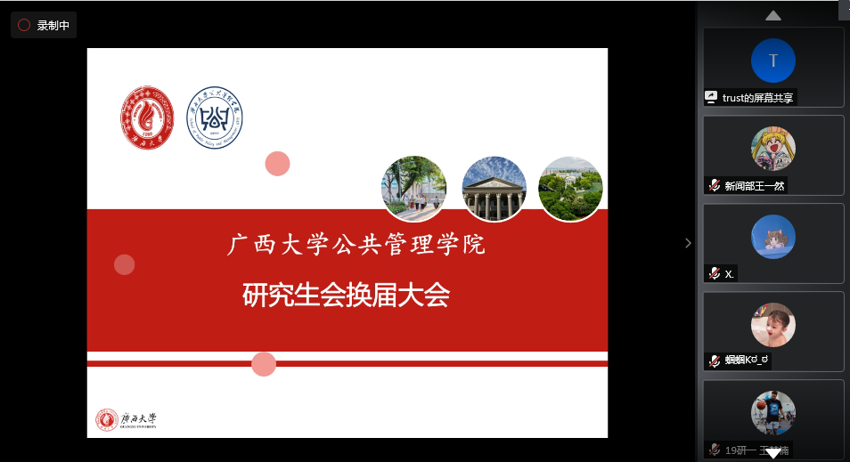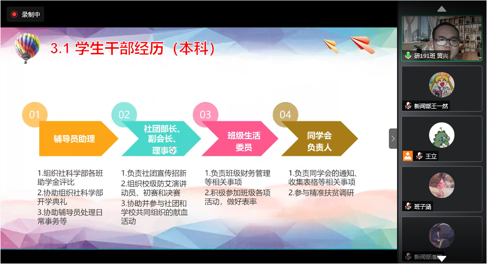 2020年8月28日下午三点,成人直播 研究生会第十九届换届选举在线上召开,学院党委副书记甘武琳、学工组刘佩瑶老师出席。