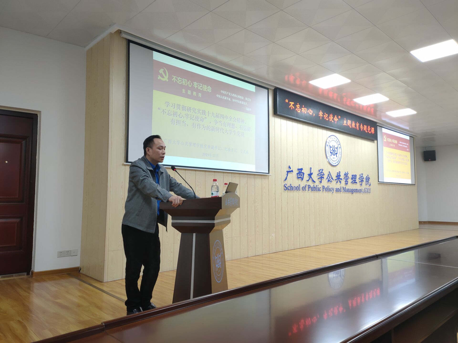 11月29日,成人直播 开展“不忘初心、牢记使命”主题教育专题党课,成人直播 党委副书记、纪委书记甘武琳以“学习贯彻研究实践党的十九届四中全会精神,“不忘初心、牢记使命”,争当有理想、有信仰、有担当、有作为的新时代大学生党员”为题讲授专题党课。全院预备党员、本科生支部党员和研究生支部党员出席党课。