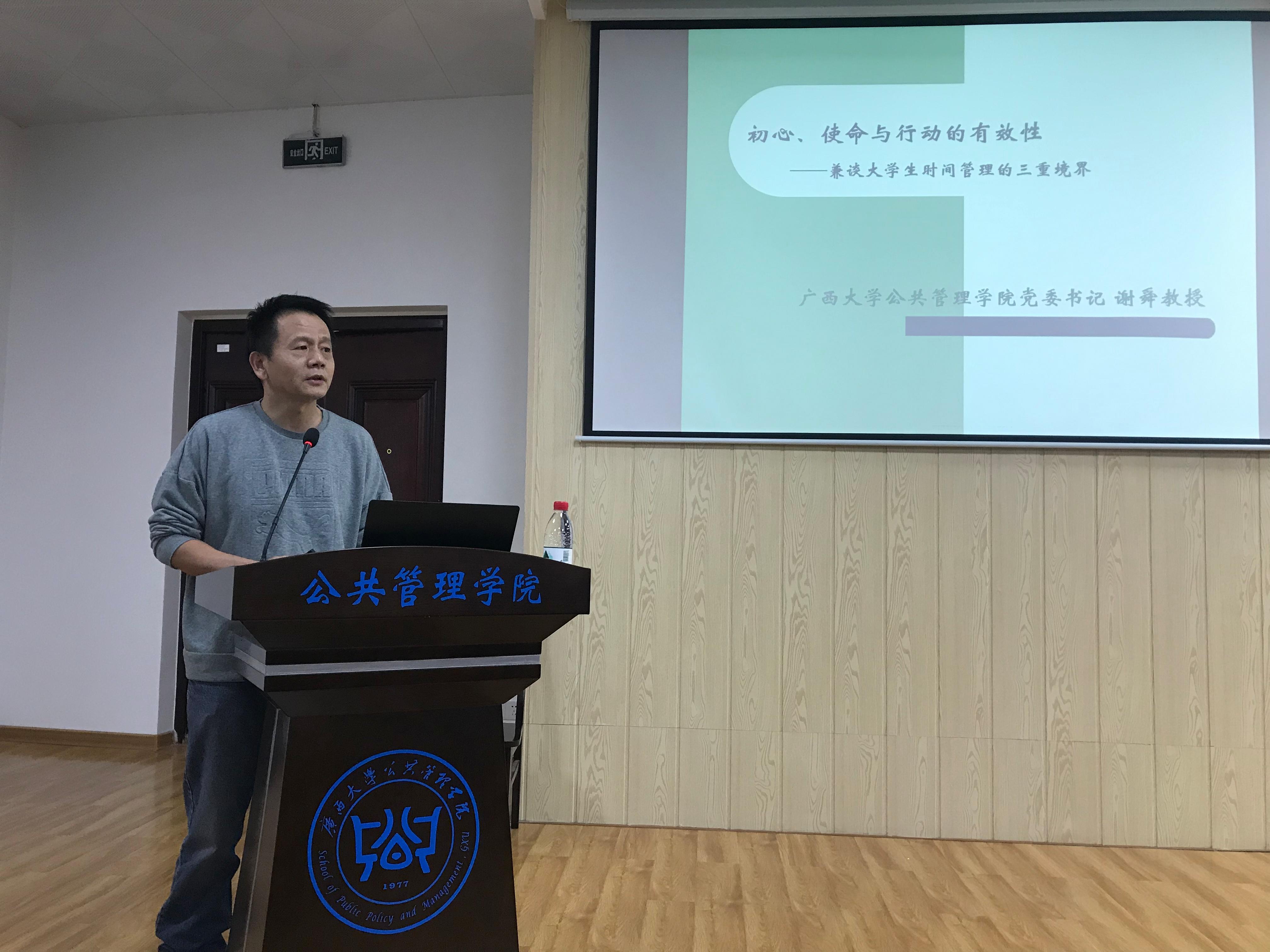 11月27日下午,以“初心、行动与行动的有效性——兼谈大学生对时间管理的三重境界”为题,讲授“不忘初心、牢记使命”专题党课在成人直播 顺利开展。此次党课由成人直播 党委书记谢舜同志主讲、党委副书记甘武琳同志主持,授课对象为成人直播 全部学生党员同志,同时参加党课的还有成人直播 副院长黄宏伟同志、教师代表刘佩瑶同志。