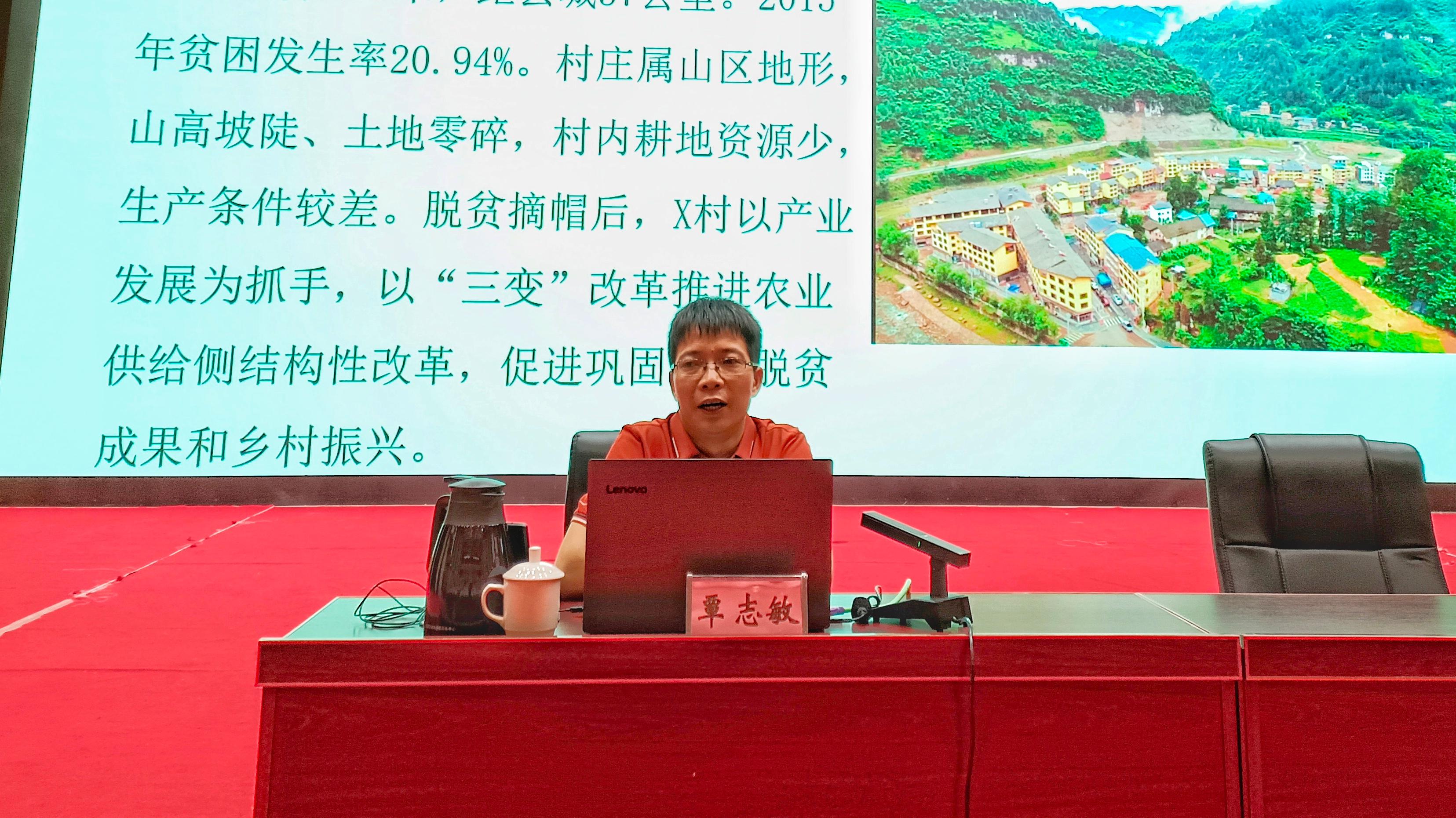 8日上午,覃志敏副教授为那坡县2022年驻村工作队员全员培训班作题为“推动脱贫地区特色产业振兴发展的路径与举措”的专题报告。培训班上,覃志敏分别从脱贫地区发展特色产业的重要意义、推动特色产业发展的主要路径、强化特色产业服务支撑的举措、发展特色产业应注意的问题、脱贫村产业发展典型案例分享等五个方面与驻村工作队员进行了交流。