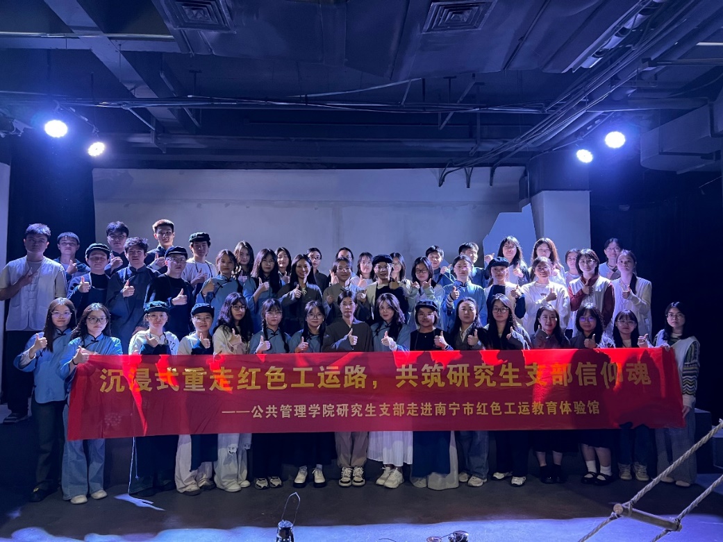 为将党史学习教育与沉浸式实践体验深度融合,11月8日成人直播 研究生支部走进南宁市红色工运教育体验馆,开展以“沉浸式重走红色工运路,共筑研究生支部信仰魂”为主题的党建活动。活动通过参观学习、角色扮演、剧情互动等形式,让党员们在“亲历”南宁市电厂保卫战的红色工运史中深化理想信念,凝聚支部力量。